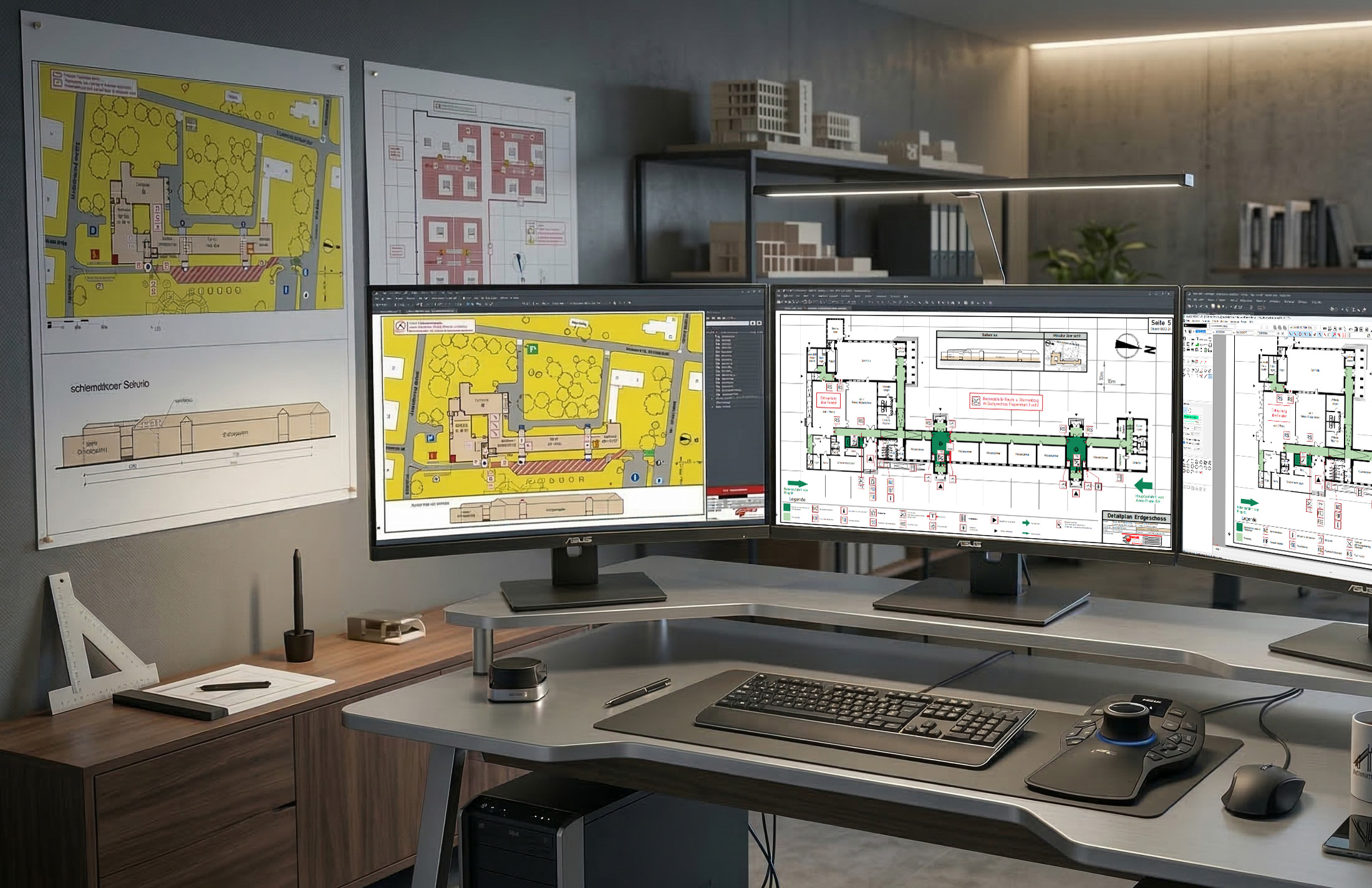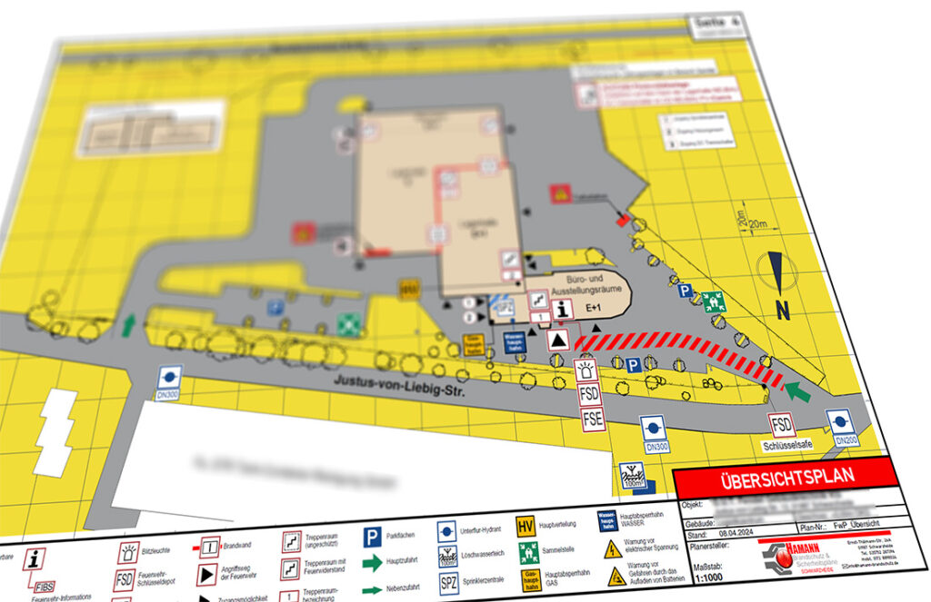 Feuerwehrpläne beinhalten alle wichtigen Informationen einer baulichen Anlage, die für einen erfolgreichen Einsatz der Feuerwehr im Alarmfall erforderlich sind. Die Einsatzleitung der Feuerwehr kann mit Feuerwehrplänen bereits auf dem Weg zum Ereignisort alle notwendigen Entscheidungen treffen. Direkt vor Ort kann dann die Feuerwehrmannschaft ohne unnötige Zeitverzögerung ihren Einsatz durchführen.