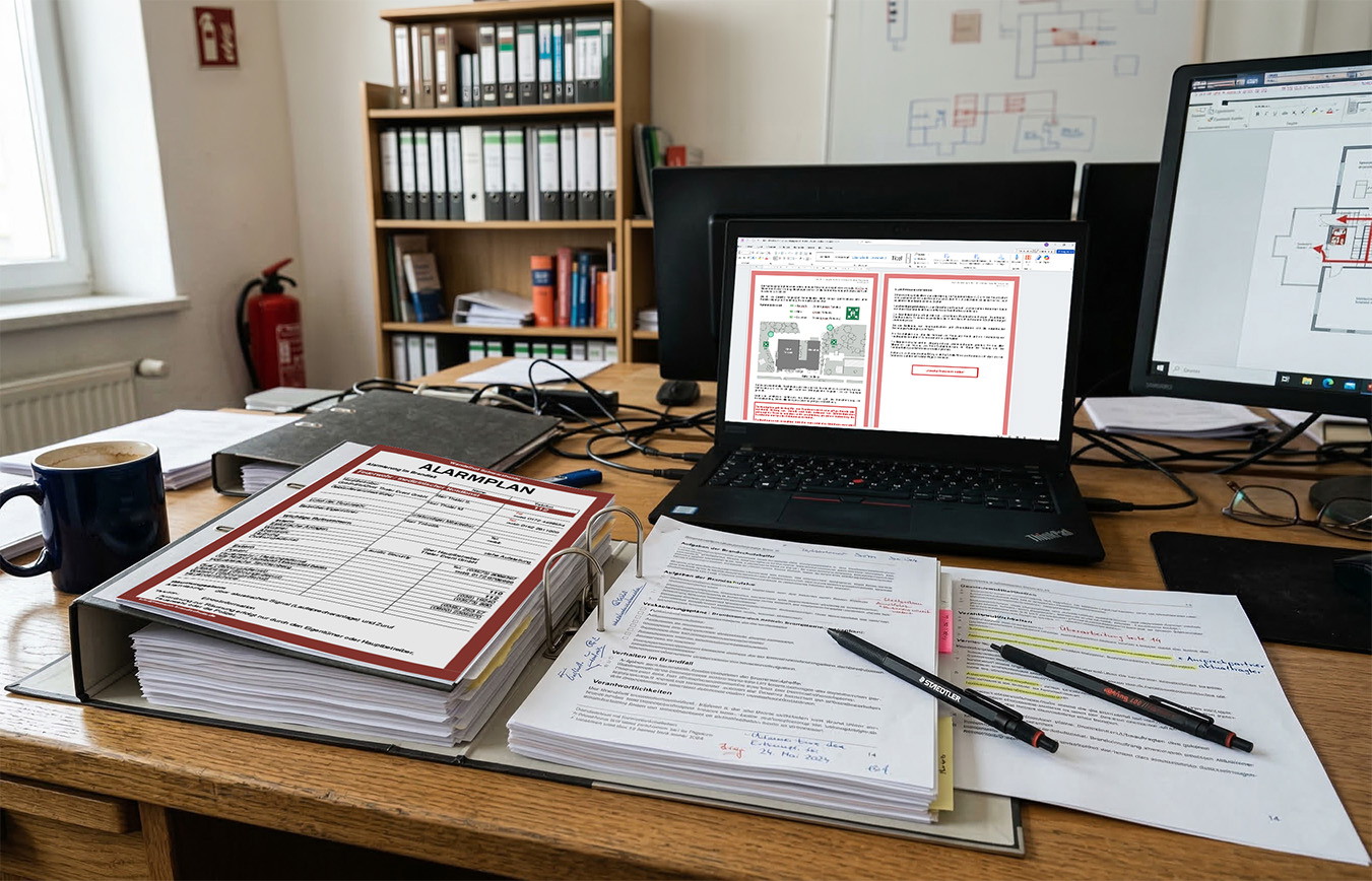 Klare Strukturen im Ernstfall: Unsere professionelle Brandschutzordnung Teil C ist das unverzichtbare Handwerkszeug für Ihre Brandschutzbeauftragten und Führungskräfte. Das übersichtlich gegliederte Dokument beschreibt detailliert die spezifischen Maßnahmen zur Gefahrenabwehr und regelt alle notwendigen Verhaltensweisen und Verantwortlichkeiten. Wir erstellen diese individuelle Ordnung passgenau für Ihr Unternehmen und stellen sie Ihnen digital als PDF und in gedruckter Form zur Verfügung. Setzen Sie auf Klarheit und Sicherheit in der Verantwortung.