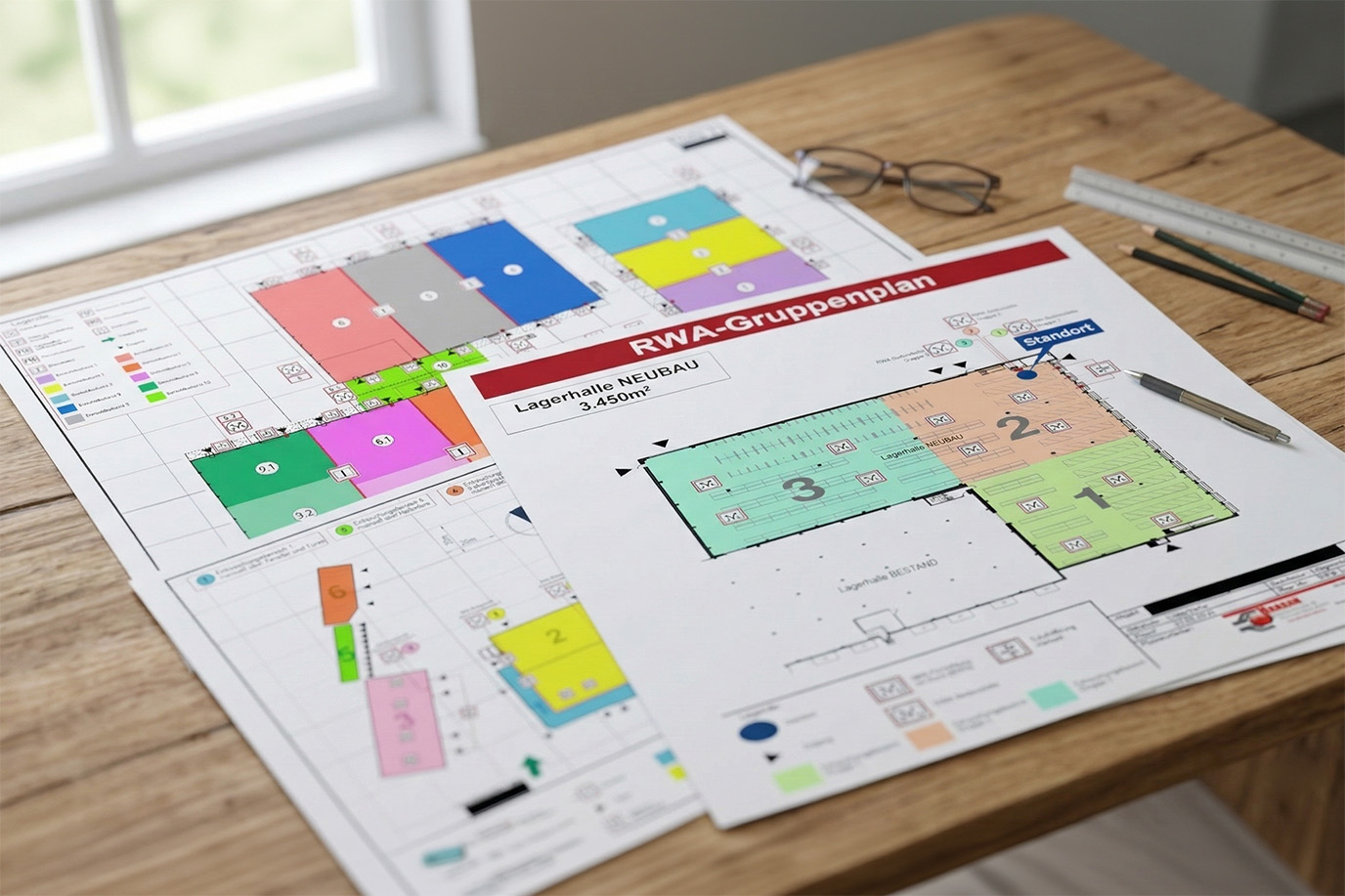Im Brandfall helfen RWA-Übersichtspläne, die Auslöseeinrichtungen schnell zu finden und die durch den Brand entstehende Wärme und den giftigen Rauch frühzeitig abzuleiten.